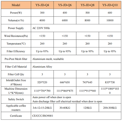 Yoshan ESP smoke filter is an option equipment for coffee roaster to help you filter the exhaust smoke to clean while roasting. If you want to roast your coffee at residential area or your local government has a strict regulation about the local environmental protection, Yoshan ESP smoke filter is wise choice. It can help to roast eco-friendly and also reduce emission. Because the Filter absorbs over 95% of the smoke and fine dust. Meanwhile help to reduce operational costs and saves you up to 50% on maintenance costs.